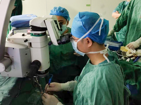 12月15日,付鹏医生团队为患者徐某进行了折叠式人工玻璃体球囊植入术,为保障手术顺利进行,还特别邀请了折叠式人工玻璃体球囊的发明者——高前应教授进行现场指导,经过一个多小时,顺利将折叠式人工玻璃体球囊植入了患者眼内。
