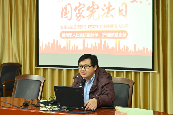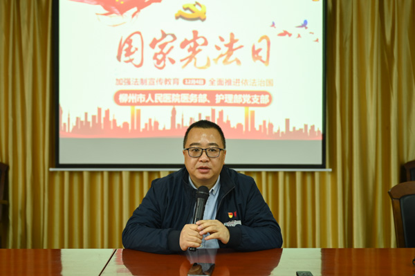 12月4日上午,医务部、护理部党支部在第二会议室开展宪法日主题党日活动。活动由温怿涛党支部书记主持,由法务部黄华强科长介绍了国家宪法日的由来及今年的活动主题等宪法知识,会上播放了《宪法普及知识》《宪法宣誓制度》视频短片。通过宪法主题党日活动,增强了党员的宪法意识,提升党员的法治观念,推动党员自觉维护宪法权威。