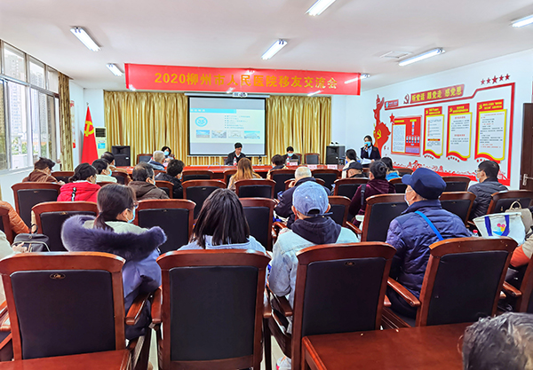 首先,潘光栋副院长为交流会致欢迎辞,感谢每一位参会的移友。他详细介绍了医院的综合情况,包括医疗水平、服务能力、人才培养,以及移植学科建设、服务宗旨。他表示,柳州市人民医院一直重视移植学科建设和人才培养,致力于提高为广大群众服务的能力和水平,为广大病友提供高质量的医疗救治、综合诊疗、随访服务等。