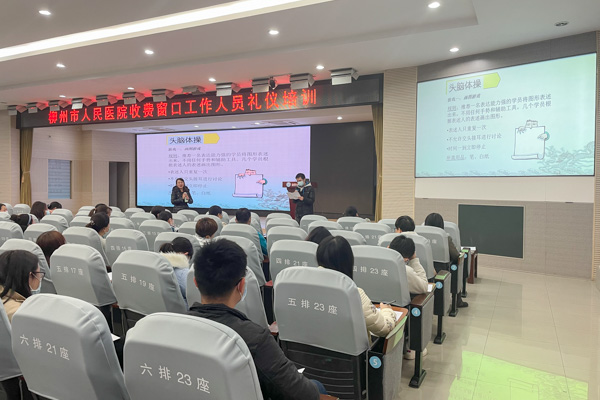 为提高收费窗口工作人员的服务意识,改善服务态度,提升窗口服务质量,我院财务科于11月27日晚上邀请柳州市职业技术学院副教授、高级礼仪师农迎春对收费窗口工作人员开展了一场别开生面的服务礼仪培训,财务科、门诊收费处及住院收费处全体人员共100余人参加了培训。