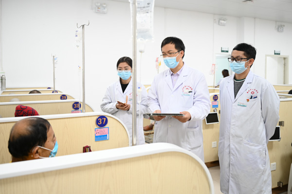 为了更好地服务患者,从入院、接诊、检查、治疗、观察到出院,肿瘤科就整个过程设置了一套精细而严格的流程。在日间病房,医生每天都要进行巡视,了解患者的实时情况。