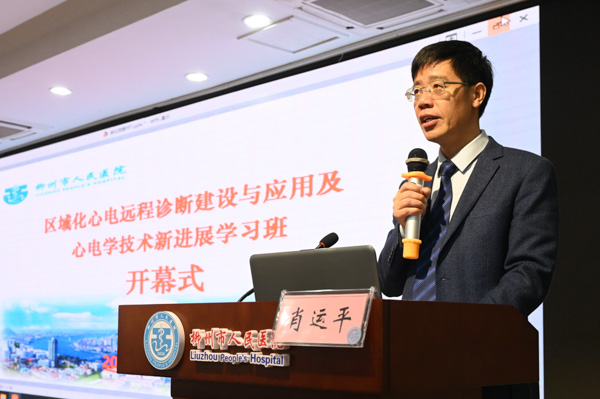 我院副院长肖运平首先致辞,他指出,本次学习班为各位同行搭建起一个相互交流、探讨合作的学术平台,将展示目前国内外心电学研究的新进展、新成果,提高心电图医技人员及临床医师的专业知识和临床诊疗水平。希望在大家的共同努力下,力争未来基层医疗机构远程心电诊断实现全覆盖,使远程心电诊断中心成为真正惠及全民的卫生医疗平台,让百姓在“家门口”就能享受三级医院的心电诊疗技术服务,向着“健康中国”的建设目标大步迈进。