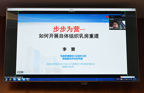 在柳州市工人医院归奕飞教授的主持下,大会邀请到湖南省肿瘤医院李赞教授以《步步为营——如何开展游离皮瓣乳房再造》为题进行线上会议的讲课。同时还有来自重庆医科大学附属第一医院的孔令泉教授、广西医科大学第一附属医院曾健教授、广西医科大附属肿瘤医院杨华伟教授、李秋云教授分别以《关注乳腺癌伴随疾病的管理》《乳腺癌乳房重建术后生活质量评价》《乳腺癌术后自体重建》《以治愈为目标的HER2阳性早期乳腺癌系统治疗策略》为题进行精彩授课。