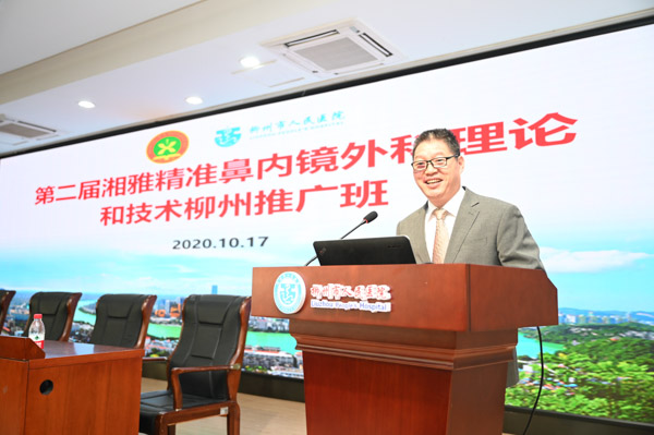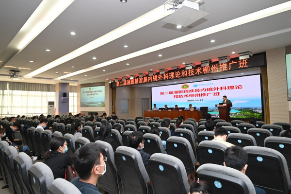 10月16日至18日,广西继续教育项目“第二届湘雅精准鼻内镜外科学习班”在柳州市人民医院第一学术厅举办。区内外各医疗机构140余名医护人员现场参加,来自北京、山西、湖南、新疆及区内各地的1000余名耳鼻喉科同行在线上关注。