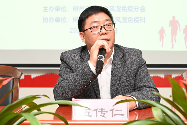 首先,由柳州市医学会会长伍传仁致辞,他强调医学会要加强组织机构建设、加强学术交流、加强医学科研工作,提升专业综合能力。希望参会各位同仁认真学习,学有所获,不断加强自身建设,进一步提高我市风湿免疫病学领域的临床研究和诊疗水平,以优质的医疗服务为健康柳州建设做贡献。