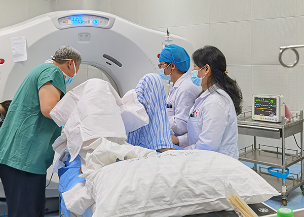 癌症的传统疗法包括外科手术、放化疗以及中医药治疗等。但是对那些不能手术的肿瘤患者,局部介入疗法具有微创、费用低、安全、疗效好等优点。特别是近年来随着介入治疗技术的进步及设备的更新换代,肿瘤介入治疗越来越显示出它在肿瘤治疗中的重要地位。其中,肿瘤的射频消融治疗更是遍地开花、方兴未艾。日前,我院肿瘤科成功开展肿瘤射频消融治疗。