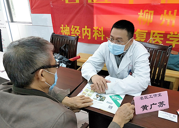 义诊现场,杨明秀工作室成员——我院神经内科二病区主任杨明秀,全科医学科主任肖丽红,神经内科副主任医师黄广苏、侯兰芳,健康管理师樊金花,以及柳南街道社区卫生服务中心邓传辉主任和王武文主任等人耐心地接受居民的咨询,根据每个居民的具体情况,嘱咐他们日常生活的各种注意事项,提醒大家要养成合理膳食、适当运动、戒烟限酒、保持心理平衡的健康生活方式。同时,现场免费为居民测血压、血糖、进行眼底检查等,专家们还就高血压、高血糖、心脏病、脑卒中等疾病的治疗提出个体化防治措施,并利用科普资料等就脑卒中的早期识别和急救要点向市民做了详细的介绍。