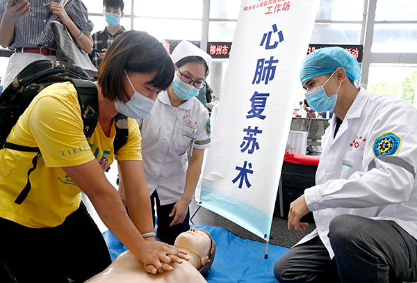 近年来,柳州市人民医院市民急救学校围绕“人人学急救,急救为人人”目标,广泛开展应急救护培训进学校、进社区、进农村、进机关、进企业活动,且在每年“世界急救日”期间,均开展形式多样的宣传活动。今年新冠肺炎疫情给人民群众生命安全和身体健康带来严重威胁,而疫情防控下的应急救护知识的普及则显得尤为重要。希望通过我们的不懈努力,让更多的人掌握防疫知识和急救技能,在突发事件发生时能够自救互救,挽救生命,降低伤害。