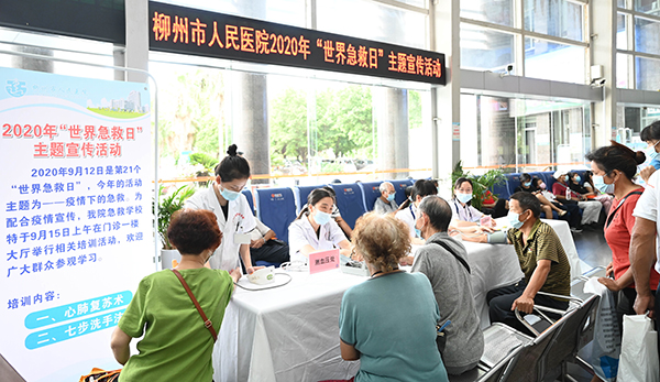 2020年9月12日是第21个“世界急救日”,今年急救日的主题为“疫情下的急救”。9月15日上午,为响应中国红十字会号召,柳州市人民医院预防保健科联合门诊部、急诊科、心血管内科在门诊大厅举行2020年“世界急救日”主题宣传活动。