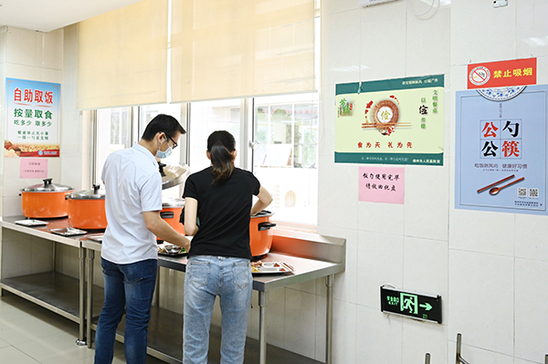 利用医院内外网、微信公众号、LED屏幕、医院电视和健康宣教等多种渠道开展文明用餐宣传,加大教育和引导;在食堂设立“文明用餐督导员”,监督和劝导职工文明用餐,做到“光盘”;二楼食堂由“窗口打饭”改为“自助盛饭”,要求“吃多少盛多少”;倡导职工主动适量点菜,减少大份菜品、少点多份菜;将“文明用餐”延伸推广到职工家庭中,倡导健康、卫生、节约的用餐方式,以餐桌小文明带动全院大文明,让职工及家属的节俭意识和文明素养不断提升。