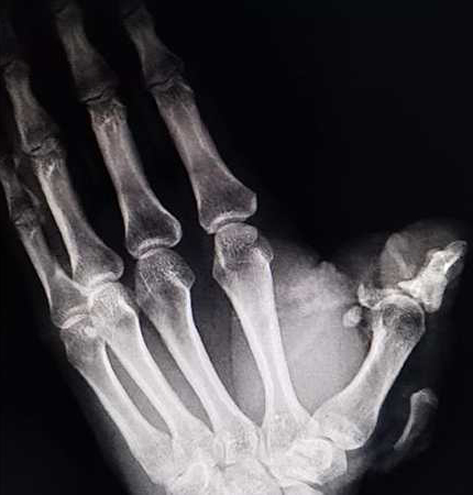 8月26日中午1时左右,我院急诊医学科收治一名由外院辗转至我院的“左拇指创伤性切割”患者,该患者在工作中左手不慎被电锯锯伤,左手拇指畸形,伤口活动性喷血,远端组织离断,局部组织毁损严重,手指活动障碍,远端肢体苍白无血运。患者万分焦虑,神情痛苦,情况不容乐观。