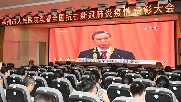 柳州市人民医院领导班子成员、各科室负责人及职工代表在第一学术厅集中收看了此次表彰大会。