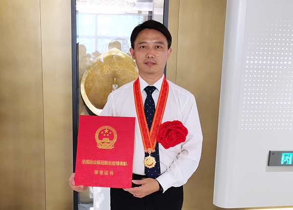 其中,以蒋忠胜为代表的始终奋战在抗疫一线的医务人员,更是我们学习的楷模、奋斗的榜样。在疫情发生后,蒋忠胜义无反顾投入到抗击疫情这场没有硝烟的战斗中。作为医院新冠肺炎救治专家组副组长,他负责隔离病区的医护人员调配、安全防护培训及病人诊疗方案制定等工作。在人员紧缺的情况下,他带领团队在抗“疫”一线连续作战30多天,每天工作十五、六个小时,经常凌晨两三点才休息,早上7点又准时出现在隔离病房。为了节约医疗防护物资,他每天早上只吃粽子,不敢喝水,只为减少上厕所的次数。疫情期间,他所在病区共收治发热病人、疑似病例、确诊病例494人次,其中确诊病例18例,为龙城百姓健康筑起了安全防线。蒋忠胜获此殊荣,是国家对柳州市、柳州市人民医院抗击新冠肺炎疫情工作的肯定,作为柳人医人,此时此刻我们倍感骄傲和自豪。