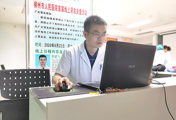 为进一步拓展优质医疗与护理服务内涵,在“新冠疫情”阻击战还未彻底结束的特殊时期,为了做好血液透析室的新冠肺炎疫情防控工作,减少感染风险,防止聚集,我们来一场隔离不隔爱的空中课堂。8月22日(周六)上午9:00,柳州市人民医院血透室以“守护透析患者的‘生命线’”为主题,开展首届线上肾友会。