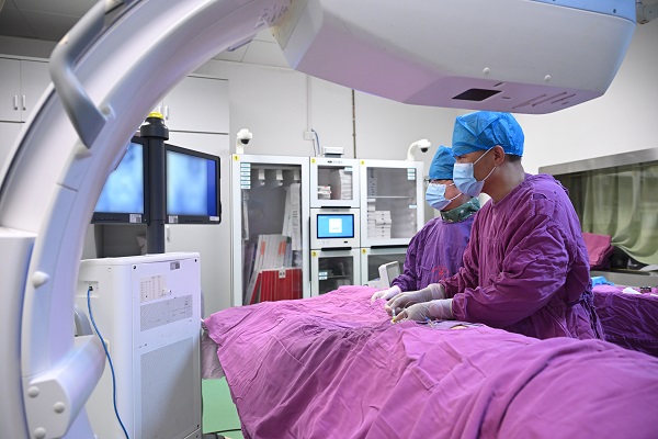 团队在影像精准引导下,将溶解药物送达突出的椎间盘部位,温和溶解多余的髓核组织,再联合椎间盘内射频减压技术,进一步促进溶解,整个过程会根据患者情况确定用药量。