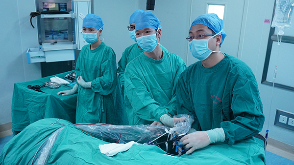 自2018年鹿寨县人民医院率先在全县范围内开展单孔腹腔镜技术以来,该技术便得到了众多患者的一致好评,但单孔腹腔镜技术仅仅是该院外科的特色项目之一。近年来,在柳州市人民医院医联体派驻专家的指导和带动下,该院外科先后在县内率先开展了经皮肝穿肝内胆道碎石取石术、经皮肾镜碎石取石术(PCNL)、腹腔镜肾癌根治术等十余项新技术、新项目,鹿寨县人民医院的诊疗水平和微创技术能力得以全面提升,增强了医院的综合实力和解决复杂病例的能力。