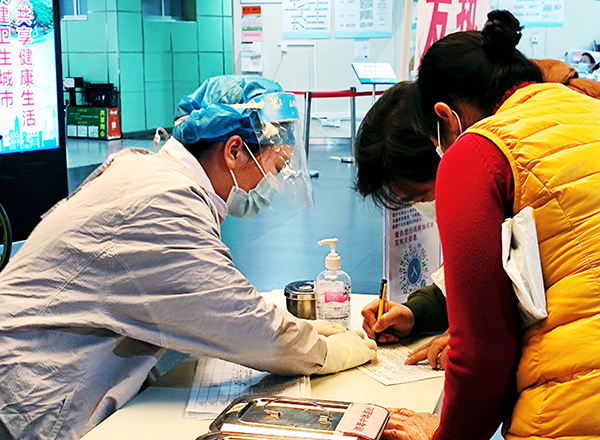 发热门诊是疫情防控的第一道防线,承担着排查疑似患者的重任。“请问你有哪些症状?有没有出过柳州?什么时候开始发烧?”医务人员协助患者填写流行病学调查表,测体温……一切工作有序的进行着。春节期间,发热门诊24小时上班,多名医护人员放弃和家人团聚,轮流值班,平均每天要接待近40名患者,筑牢疫情防控的第一线。