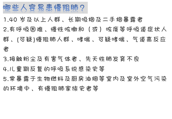慢阻肺患者在早期往往没有明显的症状,通过肺功能检查可以早发现、早治疗。