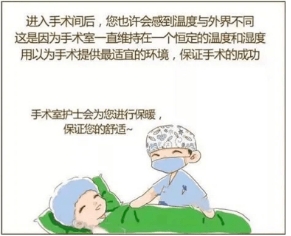 手术间内巡回护士会控制手术室的温度,保持在适宜的范围。同时提供被子、升温毯、输注温热液体等等,不会让您感到寒冷。