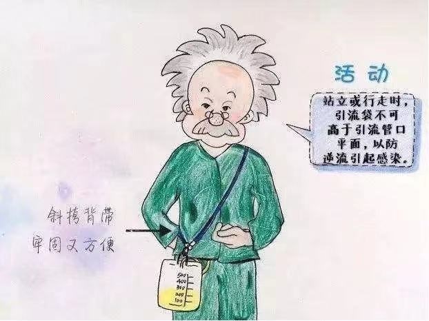 1.妥善固定:在身体活动过程中应注意保护T管,防止因翻身、活动、搬动时被牵拉而脱出,切勿拉扯,引流袋放置切勿超过腹部引流管口水平,以免胆汁反流和感染,可用胶布固定于腹壁上。