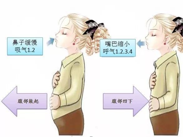 指导患者根据病情选择坐位或站位,将两手置于腹部并放松身体,训练时保持嘴部紧闭,用鼻子呼吸,呼气时保持平稳、缓慢吸气、呼气时间比为1比2,并逐渐减慢呼吸频率,每分钟呼吸8-10次为宜,每次训练持续15分钟,每日训练2次。