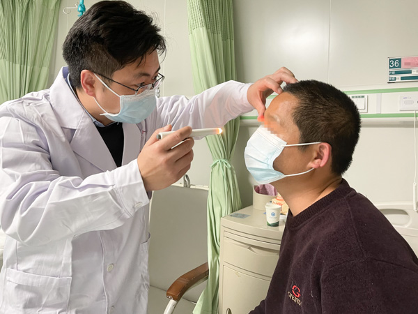 2022年2月24日,眼科团队为患者王先生进行了人工玻璃体球囊植入术,经过一个多小时,顺利将人工玻璃体球囊植入了患者眼内。