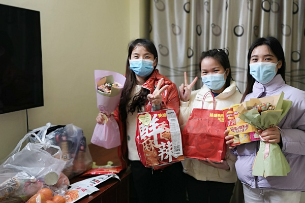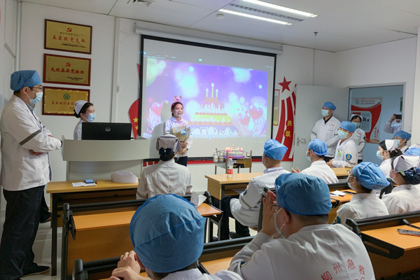 ▲为抗疫归来同事举行庆生仪式