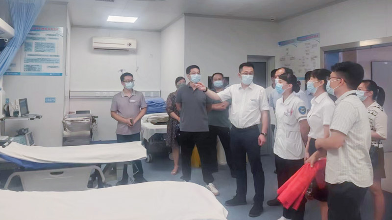 培训会后,急诊医学科党支部书记、主任甘涛,医务科副科长陈悦康一行还实地查看了鹿寨县人民医院急诊科、创伤中心的建设情况,就如何进一步完善制度流程、规范化救治工作流程等方面提出了指导性意见和建议。