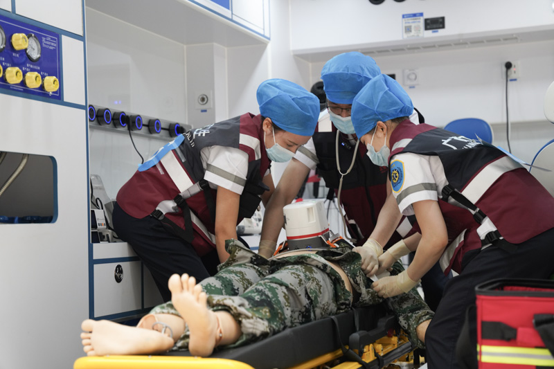 接到比赛通知时,距离比赛时间仅有5天时间,时间紧、任务重!队员们在每日繁忙的工作之余,大家争分夺秒进行训练!严重多发伤、胸痛、卒中、急性消化道出血……各种急救处置措施、所有急救方案的紧密协调配合,在模拟训练中大家精益求精、力求更快、更好救治每一位危重患者!