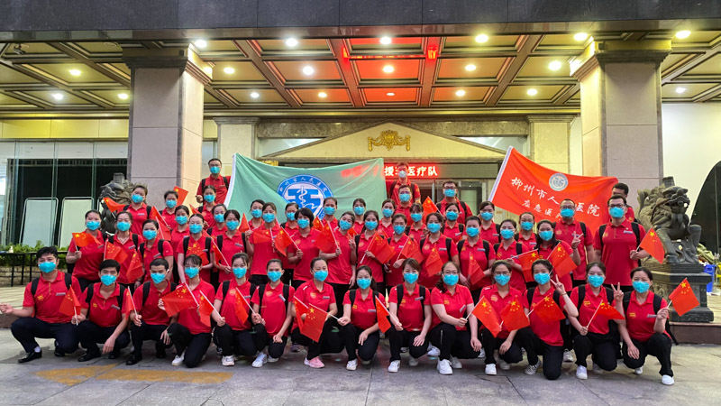 2022年8月,李桂湘闻令而动,跟随柳州市人民医院援琼医疗队赴海南海口方舱医院支援。作为护理小组副组长,她凭借在科室积累的防控工作经验,带领组员们全副武装,在方舱里紧张而又有条不紊地忙碌着。